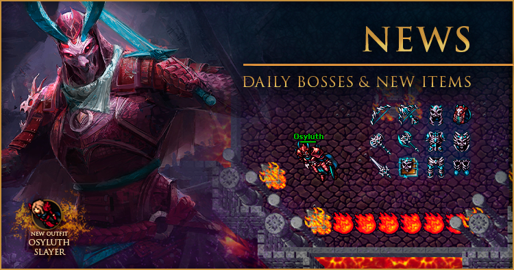 Boss Points: 300 Note: If you defeat the same Daily Boss in the same day (for example a Osyluth and a Perfected Osyluth), the second defeated Boss will give 50% of the Boss Points. Additionally, if you defeat the same Daily Boss in the same day 3 times (for example a Osyluth, a Perfected Osyluth and a Radiant Osyluth), the third defeated Boss will not give you any Boss Points. Experience and loot will always be rewarded normally. If a player dies inside a Daily Boss room, they will not suffer any penalties — they won't lose Blessings, AOL, or experience. However, supplies will still be consumed normally in these rooms. |